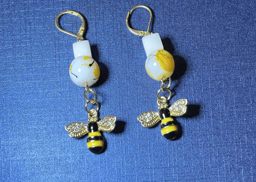 Fresh and fun! You'll love wearing these beautifully handcrafted earrings every day. Rhinestone winged enamel bees dangle from amazing decorative glass beads. Dress up or dress down, these bees are sure to get all the buzz.