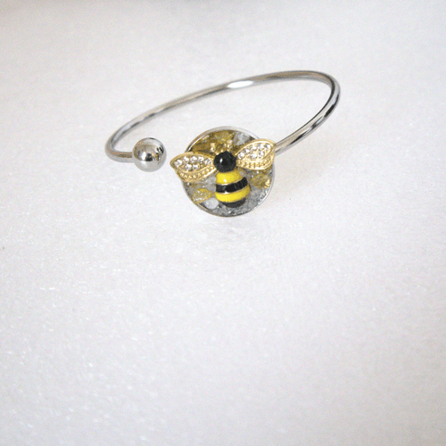 It's Bee Season! This bracelet features a playful rhinestone-winged bee set in a round silver bezel tray of glistening White Quartz and Citrine stones. Lightweight and flexible, this bangle ensures a comfortable fit for most wrist sizes. Contemporary in design, this piece will add a touch of sophistication to your casual look and is perfect for everyday wear.
