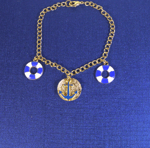 Stylish and modern, this simple 3 charm link bracelet has a mesmerizing anchor nestled in a shimmering golden disc. The lobster claw closure allows the wearer freedom to adjust the bracelet to a comfortable fit.