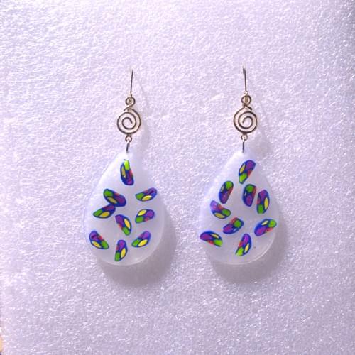 Our Handcrafted Polymer Clear Teardrop earrings, are a stunning showcase of artisanal craftsmanship and the colors of Summer. Each clear teardrop is embedded with mesmerizing multicolored mosaic chips, creating a kaleidoscope of hues that catch the light beautifully. Elegantly accented with a silver-tone swirl charm, these lightweight earrings are secured with a lever back closure, ensuring a comfortable and secure fit for all-day wear. At approximately 3.5" long, these uniquely designed eye-catchers will surely elevate your style and exude both attitude and artistry.