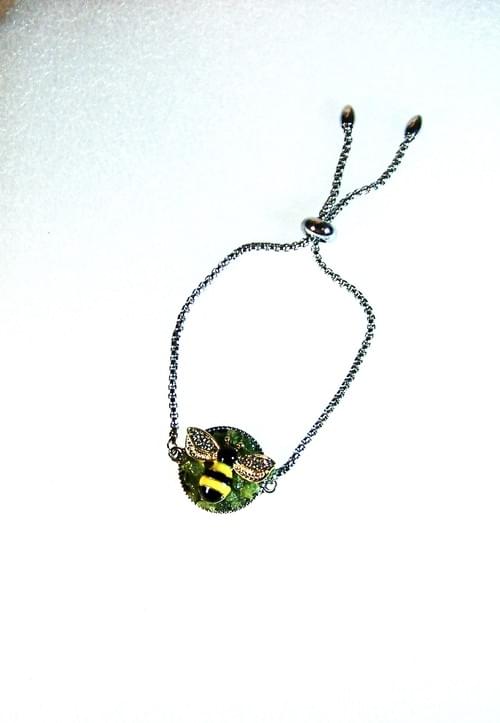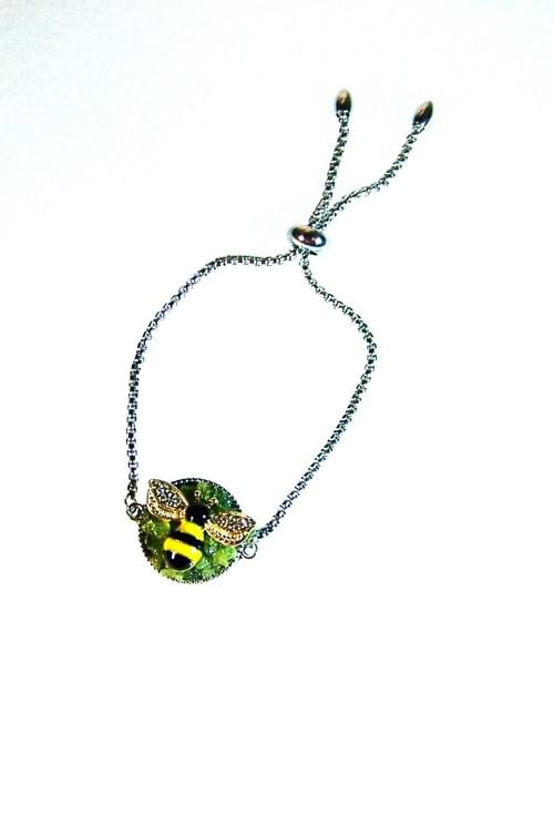 Part of the Healing Collection, the eye-catching and intricately textured silver-tone details of this bracelet catch the light beautifully. A bed of Peridot, known as the "Stone of Compassion" and a charming rhinestone winged bee, blend together to create this unique and blissful design, and brings a touch of playful elegance to the classic chain Bolo. Perfect for both special occasions and everyday wear, the adjustable slide ensures a comfortable fit for most wrist sizes.