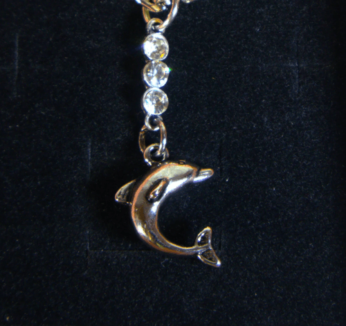 You'll fall in love with this playful dolphin hanging from a shimmering 3 stone accent charm. Versatile and complimentary to any fashion style.