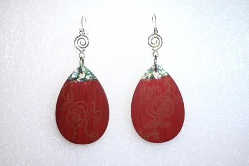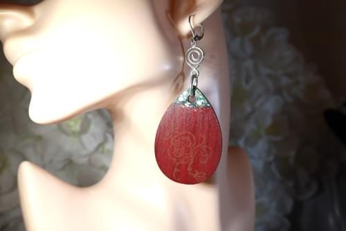 Hand-painted wood teardrop accented with colors of the forest, hand-stamped gold tone accents, and dangling from a whimsical silver tone swirl make these earrings the perfect Boho blend. Incredibly lightweight, these earrings are secured with lever-back wires for comfortable all-day wear.