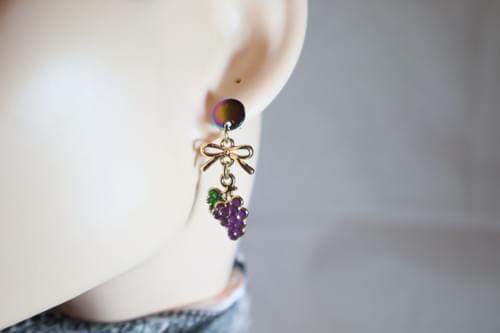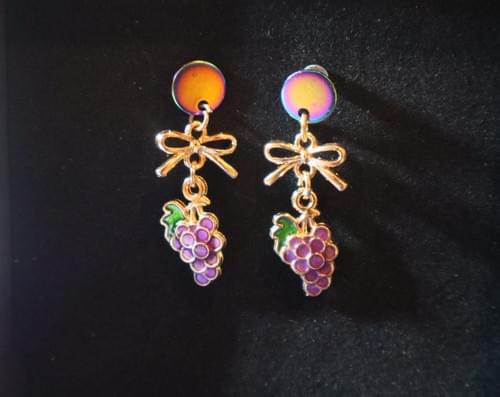 Sweet, simple, and classy. These charming earrings boast purple grapes hanging from a playful bow and mounted to a shimmering mermaid stud. If you love purple, you'll fall in love with these keepers!