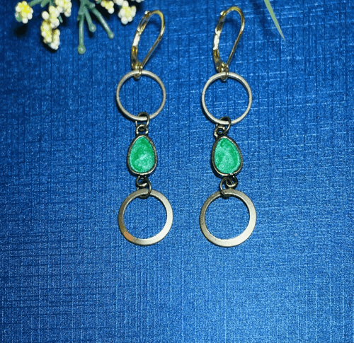 Amazingly lightweight, these gold tone rings create a sophisticated yet carefree look. The emerald green teardrop charm is timeless, making these earrings perfect for any occasion. The lever-back closures insure a secure and comfortable fit for all day wear.
