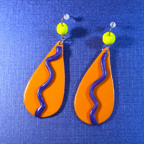 Part of our Oceanic Vibes Collection, these modern and versatile handcrafted polymer earrings effortlessly combine the vibes of the ocean with comfort and style. The teardrop shaped earrings adorned with a blue wavy accent and single yellow wood bead, are so lightweight you'll forget you have them on. Contemporary in design, these earrings are vacation ready and will add a touch of sass to your favorite summer look.