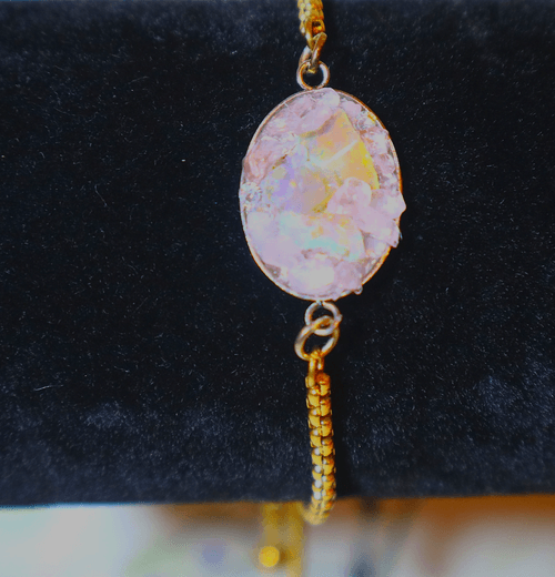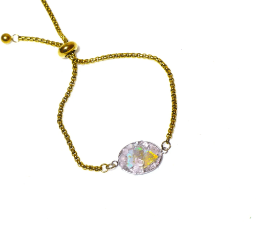 Pink Quartz symbolizes love and mesmerizing Opal symbolizes positivity. Together, these precious stones promote a sense of well-being. Part of our Healing Collection, each stone in this handcrafted piece is carefully set by hand with love and an artistic eye. The adjustable bolo chain makes this bracelet a comfortable fit for most wrist sizes.
