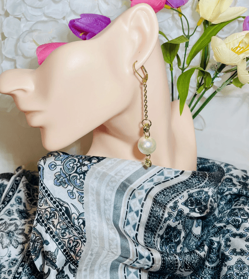 Perfect for any occasion, these eye-catching earrings are classic, sleek and stylish. Suspended from chains and adorned by gold-tone rings, these lightweight pearls sway playfully when you move.