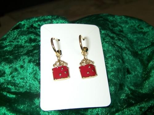 These small hoops make a big statement boasting a charming red enamel present with a swirly gold bow. Super cute for any time of day or night.