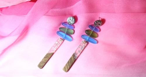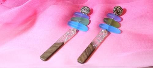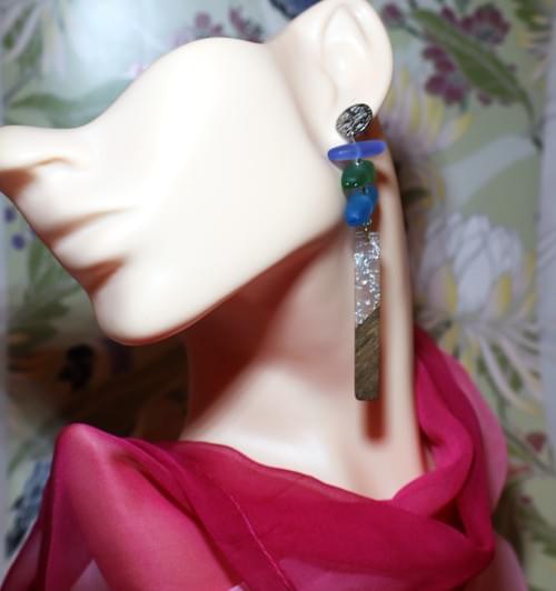 Wow factor! Columns of foil encased acrylic and wood, together with 3 beautiful glass beads bring the colors of the ocean and nature to life. These unique, handcrafted beauties are sure to turn heads.
