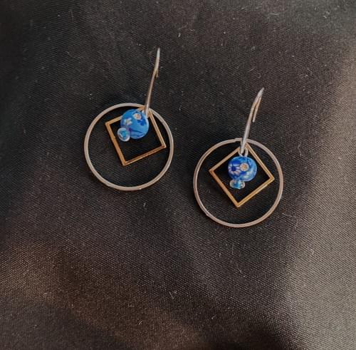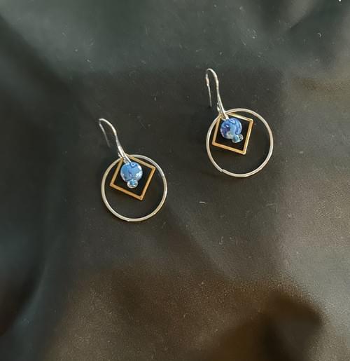 These uniquely designed earrings boast decorative clay balls dangling inside a golden triangle moving freely inside a silver circle. Lightweight, comfortable, and stylish, you'll want to wear them all day.