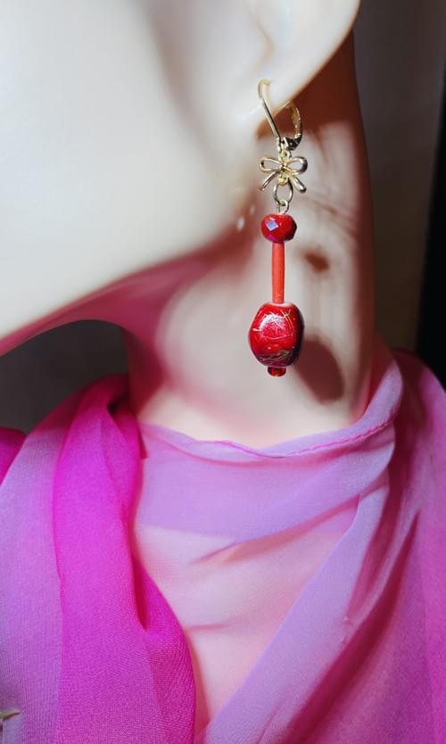 Eye-catching red beads accentuated with gold, sway freely from a charming gold bow. These uniquely crafted earrings are part of our Refresh Collection, a collection that blends repurposed and new materials together to create exquisite, hand-crafted jewelry. Lightweight and perfect for any occasion.