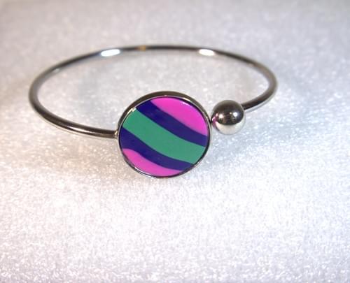 Introducing our Summer Vibes Bangle Bracelet, a modern and versatile accessory that effortlessly creates a relaxed summer vibe. This bracelet features a colorful, handcrafted multi-colored polymer disc set in a round silver bezel tray. Lightweight and flexible, this bangle ensures a comfortable fit for most wrist sizes. Contemporary in design, this piece will add a touch of sophistication to your casual look and is perfect for everyday wear.