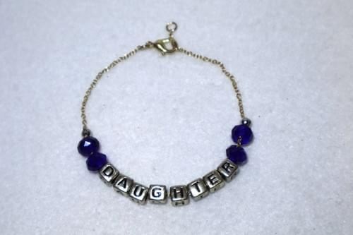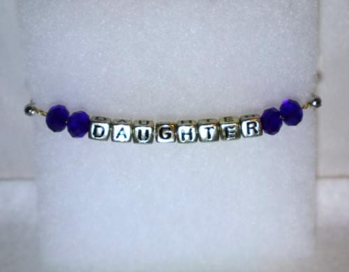 A special gift for your special one! Stunning cobalt blue crystal beads surround the word DAUGHTER in silver-tone block letters. This bracelet is not only stylish and charming...it's meaningful.