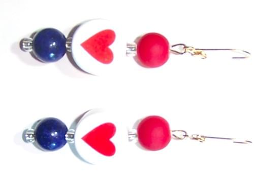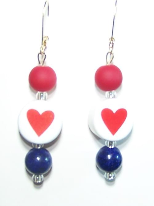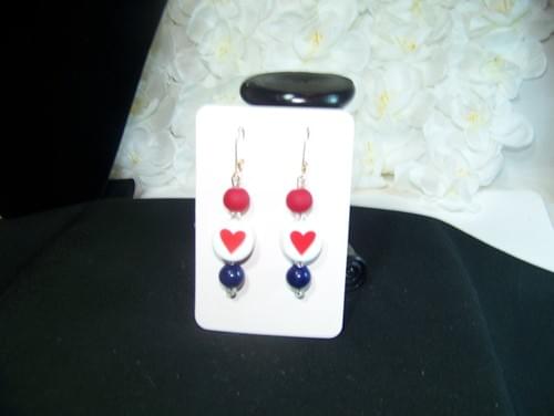 Show your spirit in these adorable Red, White, and Blue dangle earrings. Playful hearts sit between red and blue beads and the tiny crystal accent beads add shimmer in the light. The earrings are elegantly secured with gold-tone lever back wire closure, ensuring a comfortable and secure fit for all-day wear. Festive and fun, these 2-inch cuties are uniquely charming.