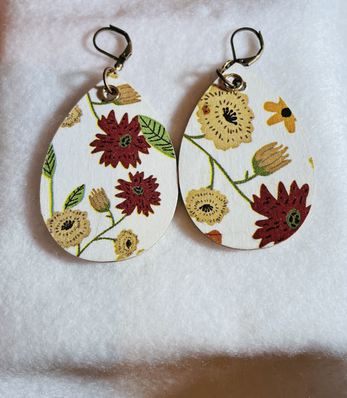 Unique, handcrafted decoupage design, these charming wildflowers are a nod to Mother Nature's carefree gift to us all. Made from lightweight wood and anchored to silver-tone lever backs, these earrings are perfect for any occasion.